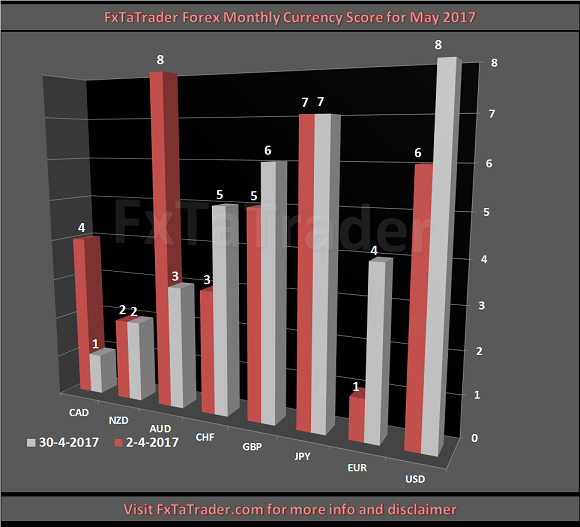 The Currency Score analysis is one of the parameters used for the Ranking and Rating list which is published also in this article. The Currency Score is my analysis on the 8 major currencies based on the technical analysis charts using the MACD and Ichimoku indicator on 3 Time Frames: the Monthly, Weekly and Daily. The result of the technical analysis is the screenshot here below.
