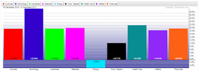 If this scenario were to happen and, taking into consideration the uncertainty that next year's mid-term elections will bring, coupled with likely interest rate hikes, I'd project that we'll likely see volatility rise in 2018 and the SPX (and the other 8 Major Indices) gain only about half of what they gained this year. This would mean an approximate increase of 10% for the SPX. I expect Technology to remain fairly strong, and Small-Caps may struggle more than Big-Caps. Nonetheless, I anticipate that the U.S. markets will continue to outperform other World markets (keep an eye on the performance of their Financials, as I noted).