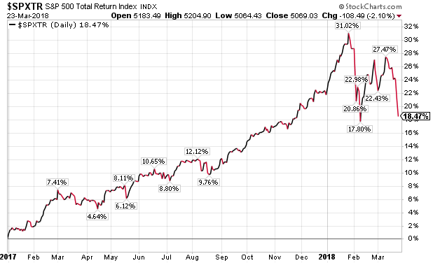 Even with the recent market weakness, on a total return basis, the S&P 500 Index is up over 18% since the beginning of 2017 and down just 2.76% year to date through Friday's close.