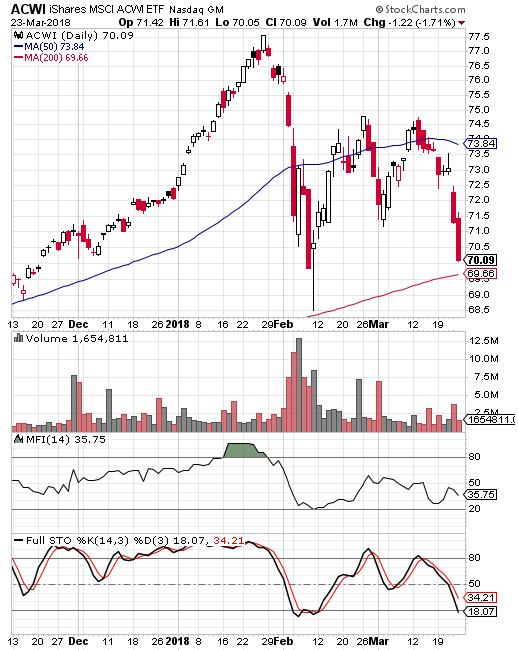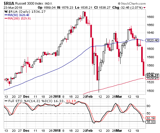 Many of the indices are nearing important technical support levels. As can be seen in a number of the various index charts below, the closing price for each respective index falls just above its 200 day moving average. The market weakness that began in late January, and for the S&P 500 Index specifically, initially culminated in a closing low of 2,581 on February 8. After this past week, a retest of the February 8 low seems to be playing out with the market's close on Friday at 2,588.
