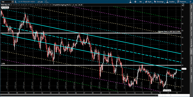 Whether or not 30.00, if reached, would have any real negative impact on equities, may be looked at in context as to where it was at its height in 2007 (just prior to the financial crisis) and the economic conditions in play at that time, compared with current conditions (as well as the financial soundness of the major banks).