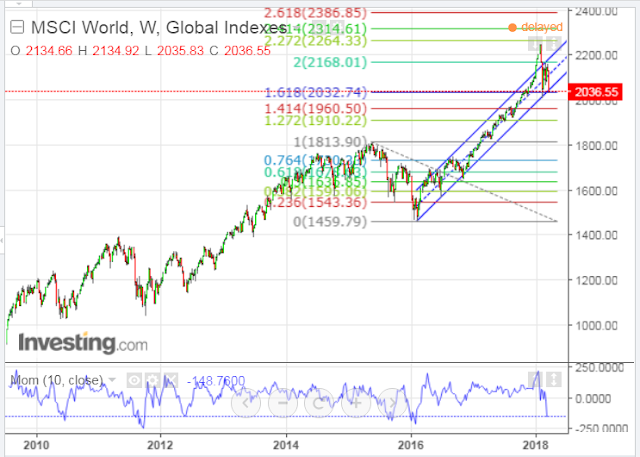 I last wrote about the MSCI World Index in my post of February 10 as one of the volatility gauges to monitor for clues in equity direction. At that time, its price was 2050.90 and I mentioned that 2032.74 was a critical major support level to watch.
