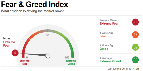 And finally, over the course of the last several days, I have published posts on sentiment that is becoming increasingly bearish, here and here. These sentiment measures are contrarian ones and are most actionable at extremes. Maybe the bearishness level is indicating a market that is near a turning point, one that wants to turn higher. And just for good measure, below is CNN Business' Fear and Greed Index. This index can not go much lower or get anymore fearful.