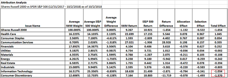 From an attribution perspective, small cap underperformance is tied to the strength in large-cap technology-related stocks as well as strength in cyclically sensitive stocks. The below attribution table shows the small cap underperformance of 165 basis point is tied mostly to underperformance in Consumer Discretionary, Technology and the Industrial sectors.