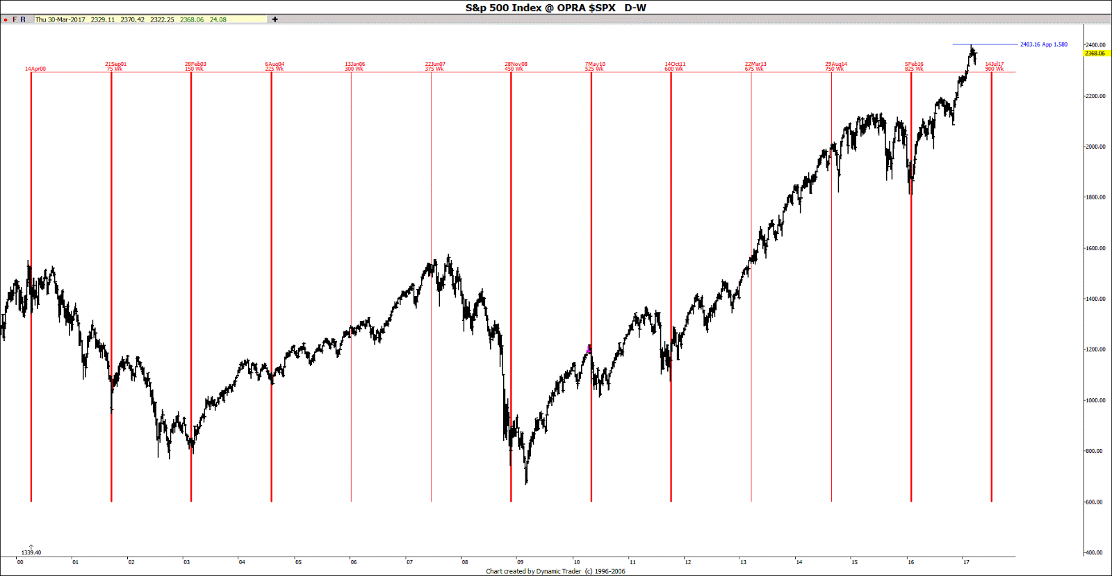 The 360 TD Cycle is about 75 weeks, which has been in the markets ever since the April 14 2000 mini Crash Low and has since pinpointed 8 major crash Lows in the past 17 years, including the 4/14/00 mini crash Low, 9/21/01 crash Low, 3/12/03L, 8/13/04L, 11/2108 crash Low, 5/6/10 Flash Crash, 10/04/11 Low and more recently the 1/20/16 crash Low.