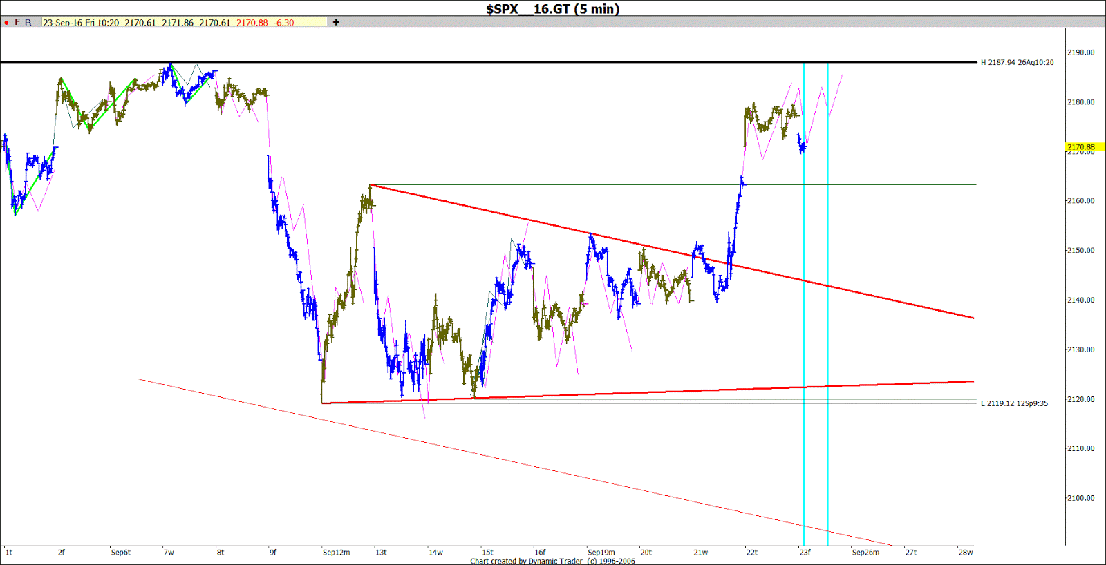 Intraday 5 min SPX CIT Times 9/23/16: 10.15, 1.15 pm