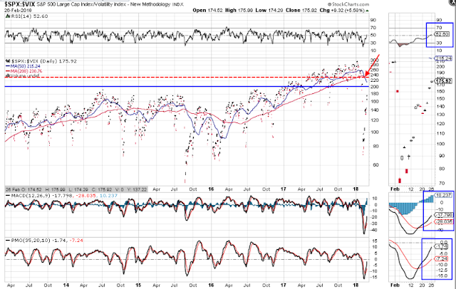 As can be noted on the following three daily ratio charts, these support levels are represented by the blue horizontal line. The only ratio whose price is still below is the SPX:VIX ratio.