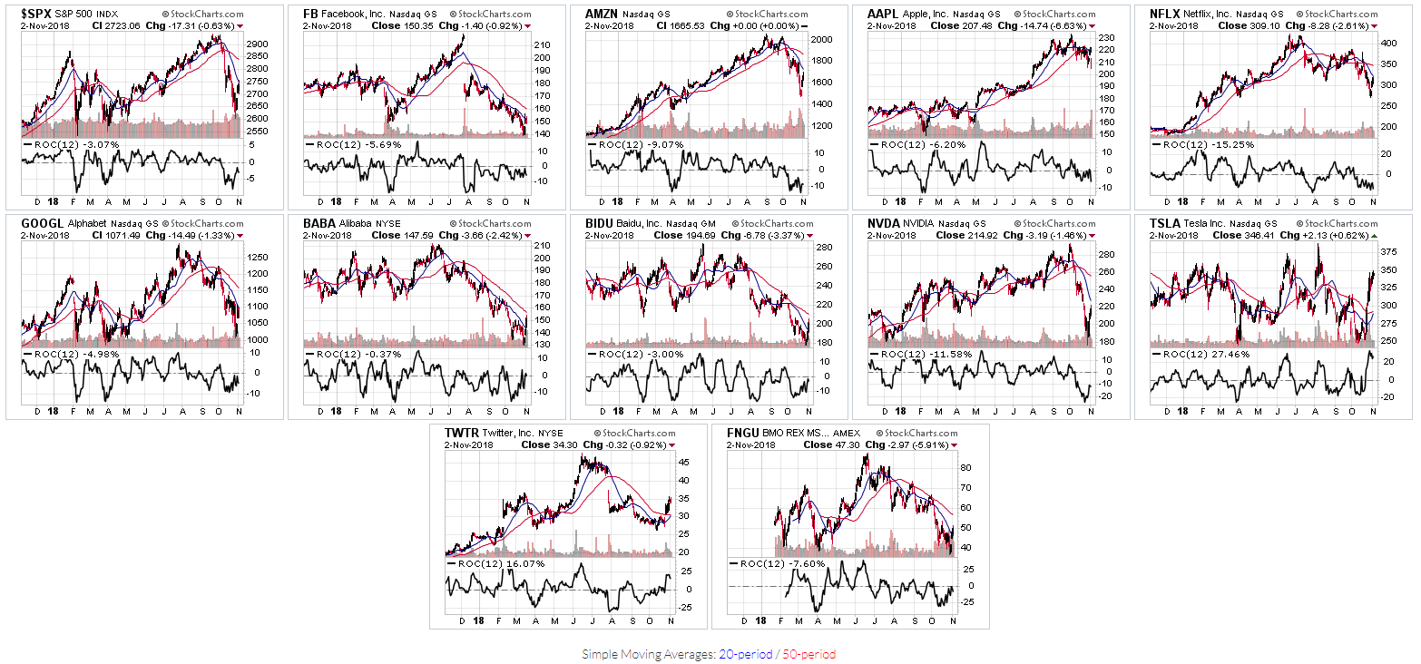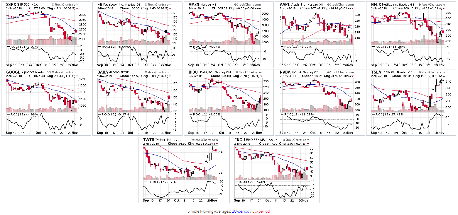 - TSLA and TWTR -- unless the other FNGU stocks reverse their declines, any further advancement on these two will not likely have much of a positive impact on U.S. equities, in general