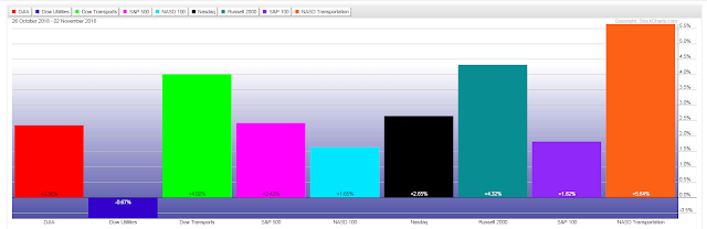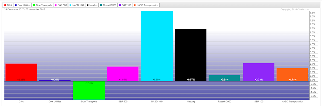 While the NDX has led the overall percentages gained year-to-date over the other U.S. major indices, it has lost the most on a one-month basis and has gained the least on a one-week basis, as shown on the following three graphs.