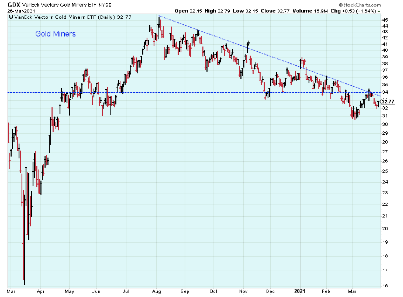I am watching and waiting for the gold miners to show life. This group could have a strong move if it breaks above the downtrend.