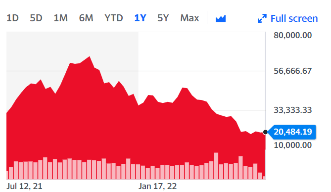 Before anyone even thinks it, let’s just start by saying that Bitcoin is not an inflation hedge, despite what anyone says. There’s an extremely obvious reason, which is the fact that bitcoin is down 35% in the last year while inflation is up 9%, meaning there is a 44% discrepancy in performance.