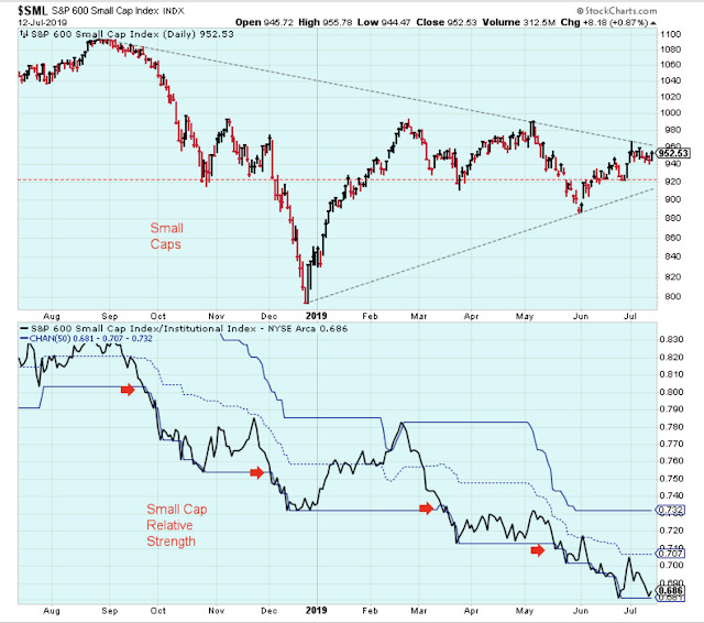 "The all time highs for the blue chip indices were not confirmed by the secondaries.The Russell 2000 (R2K) is 8.8% off its all time high and was down for the week." - Mike Burk