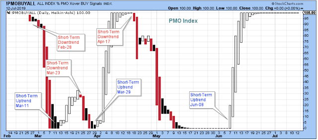 However, I am sticking with my system and taking partial profits while the PMO is at the top of the range so that I have cash available to be deployed for the next time the PMO is at the bottom of the range.