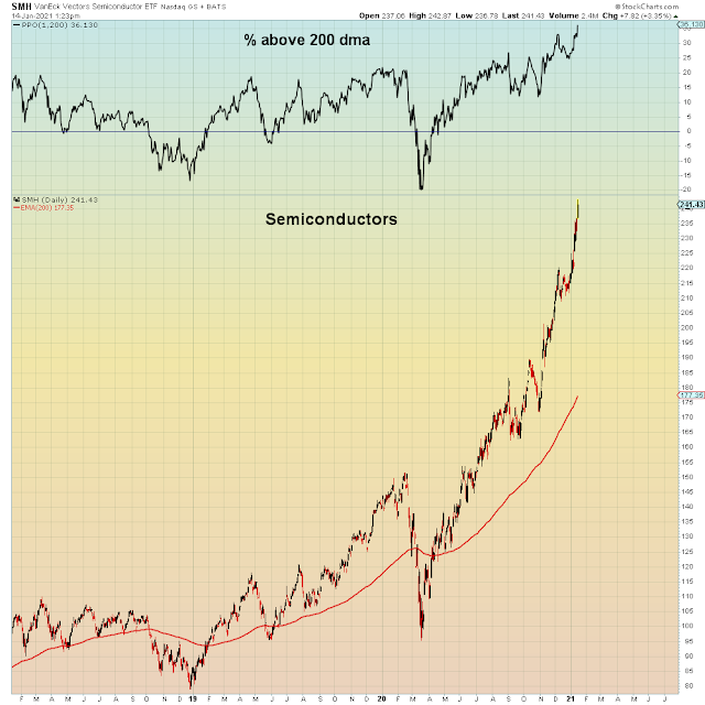 Pretty much every chart of out-performance looks like this one of Semiconductors – very elevated on every time-frame; from daily to weekly to monthly.