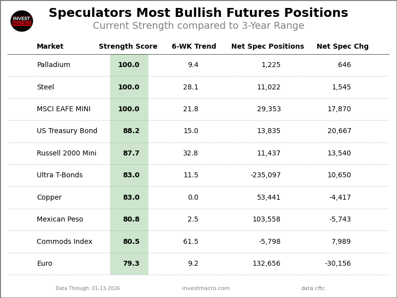 Speculator Extremes: Steel, Palladium & EAFE MINI Lead Weekly Bullish Positions