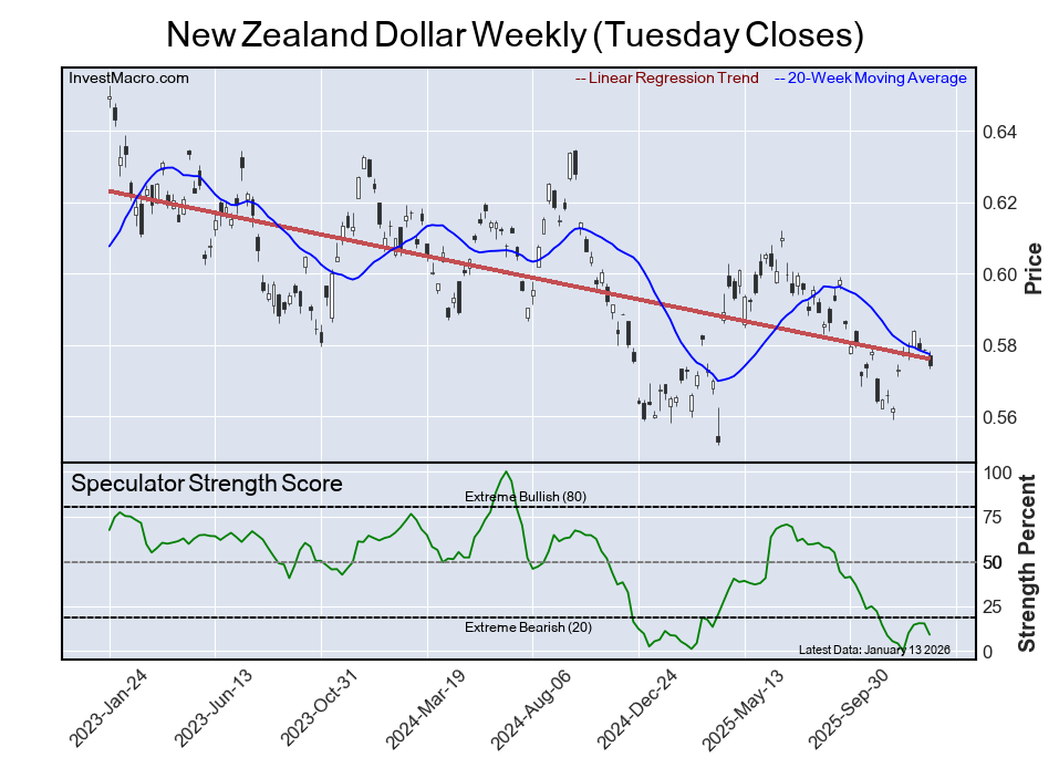 Next, the New Zealand Dollar speculator position comes in as the fifth most bearish extreme standing for this week. The NZD speculator level is currently at a 9 percent score of its 3-year range.
