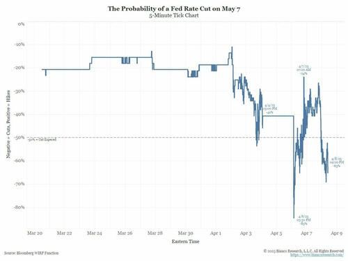 I think the market knows this which is why the chart below shows only a 63% probability of a cut in rates in a month. Not intra-meeting! Rates cuts are not the answer.