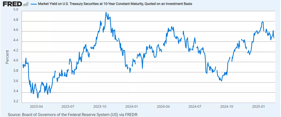President Trump is trampling everywhere, threatening tariffs, cutting back on immigration, and, more importantly, raising the specter of an ever-deepening budget deficit. Investors have expressed relatively mild interest in the tariff issues as it relates to inflation. The stock market continues to hold up well, the US dollar index remains elevated, and long-term interest rates remain steady, post-election. Now, the next test will be at budget time, this spring, when the US Federal government puts out its call to the bond market to finance which, assuredly, will a historically large deficit. Investors remain decidedly uncertain as to whether to worry about a return to inflation from deficit spending or to a recession from major cutbacks.