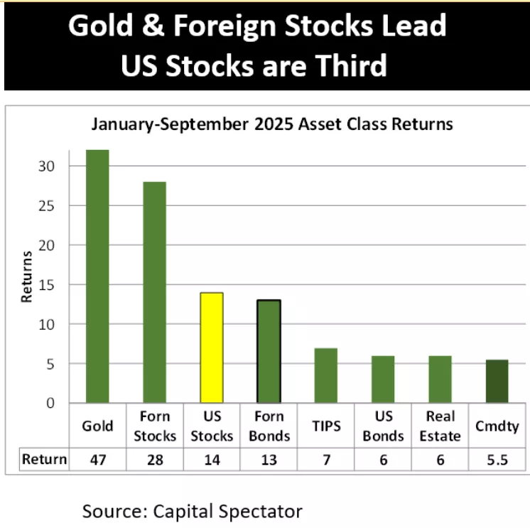- Diversification outside US stocks has added significant value this year, as evidenced by the strong performance of gold and foreign equities.