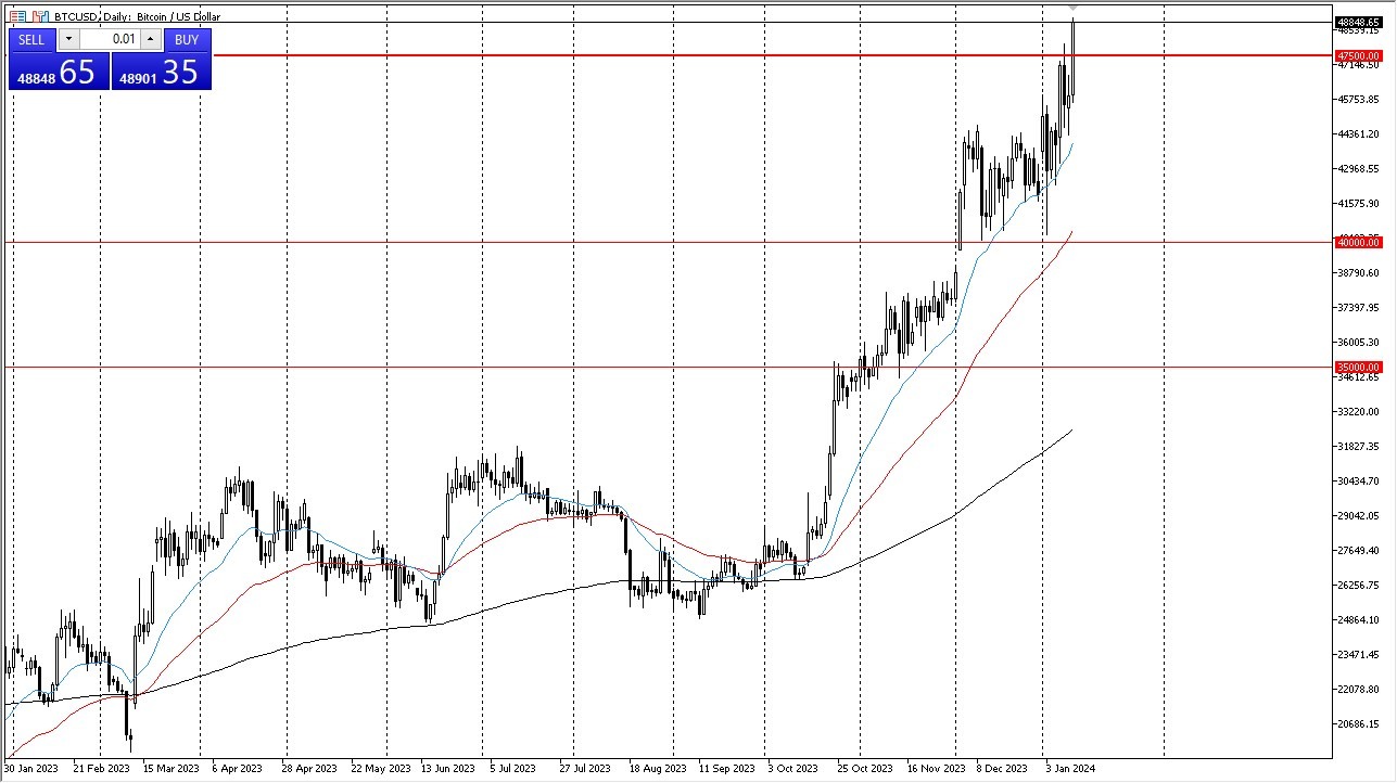 At the end of the day, Bitcoin is under upward pressure, with the potential for a breakout above the $47,500 level. While short-term pullbacks may occur, the overall market sentiment remains bullish, fueled in part by the anticipation of a Bitcoin ETF. Investors should exercise caution but recognize the prevailing bullish trend in Bitcoin, with $52,000 serving as a significant target in the event of a breakout.