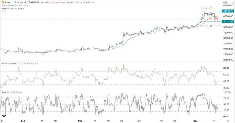 Bitcoin price retreated in the overnight session as the recent bullish momentum faded. The BTC/USD pair dropped to a low of 40,120, its lowest point since December 4th. It has crashed by more than 8% from its highest point this week.