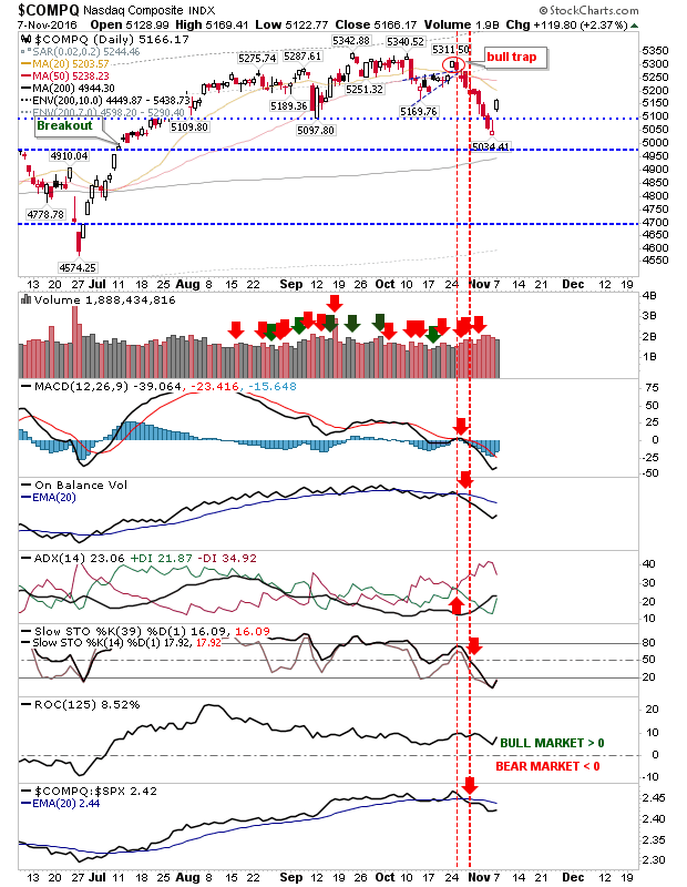 The Nasdaq hasn't established a downward channel like the S&P. However, there is a potential 'bear trap' on the return above 5,100.