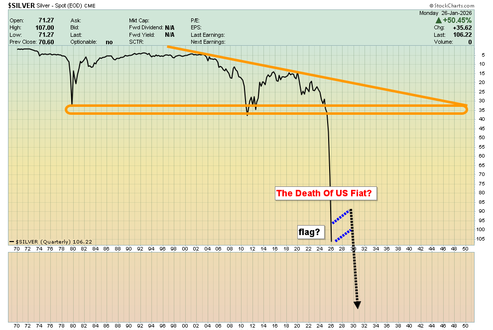 Fiat monies die over time, but there are occasional rallies and the next one against silver could take the form of a bear flag.
