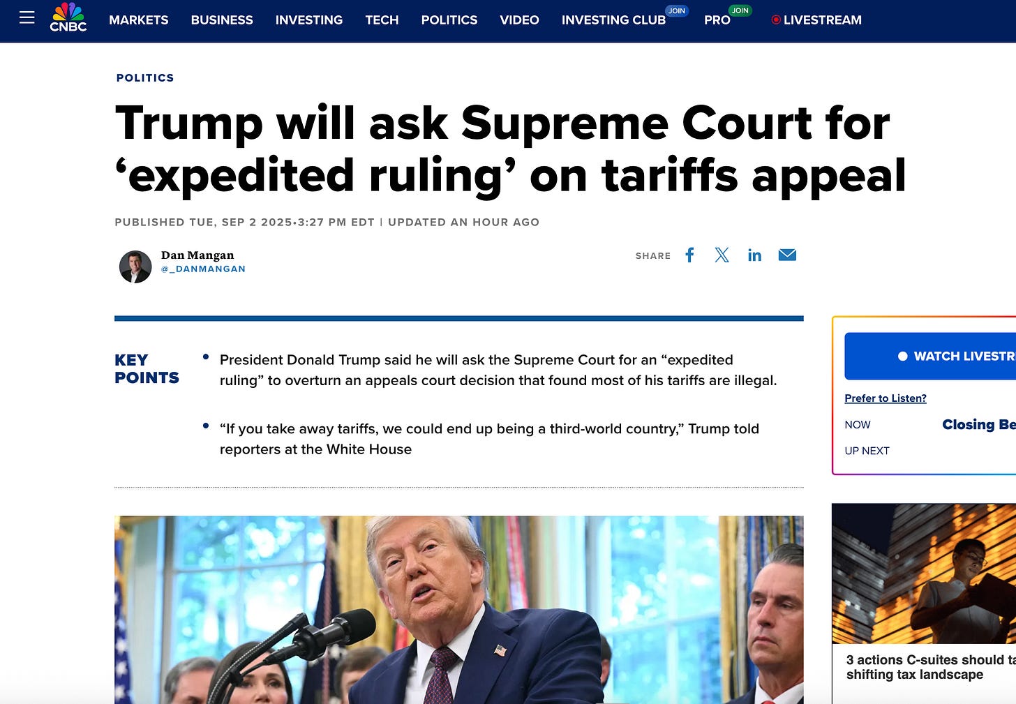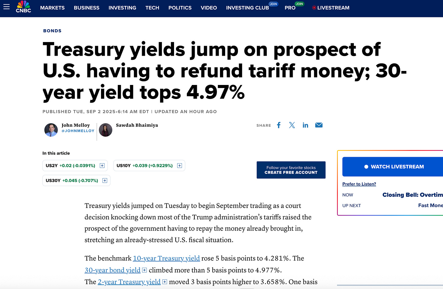 I also thought this headline below about the 30-year yield rising in response to the possibility that the Trump administration would have to actually repay the tariff money contributed to the rally too.