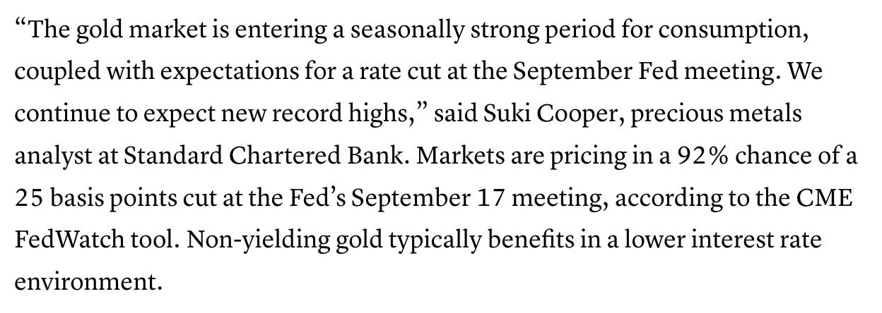 CNBC chalked the move up to seasonality and expectations of a September rate cut.
