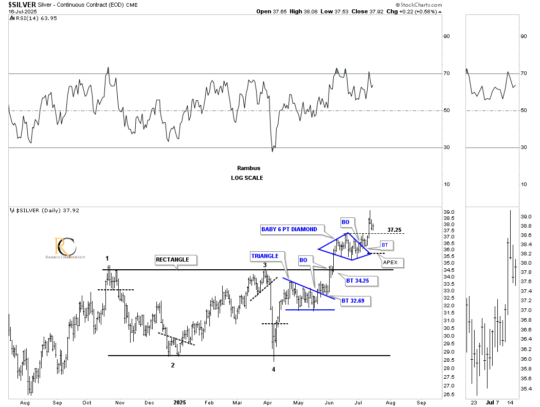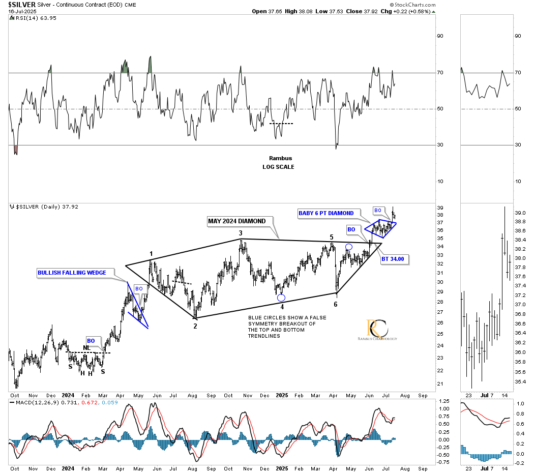 Just a quick update on the short term daily chart for silver showing the baby diamond breakout.