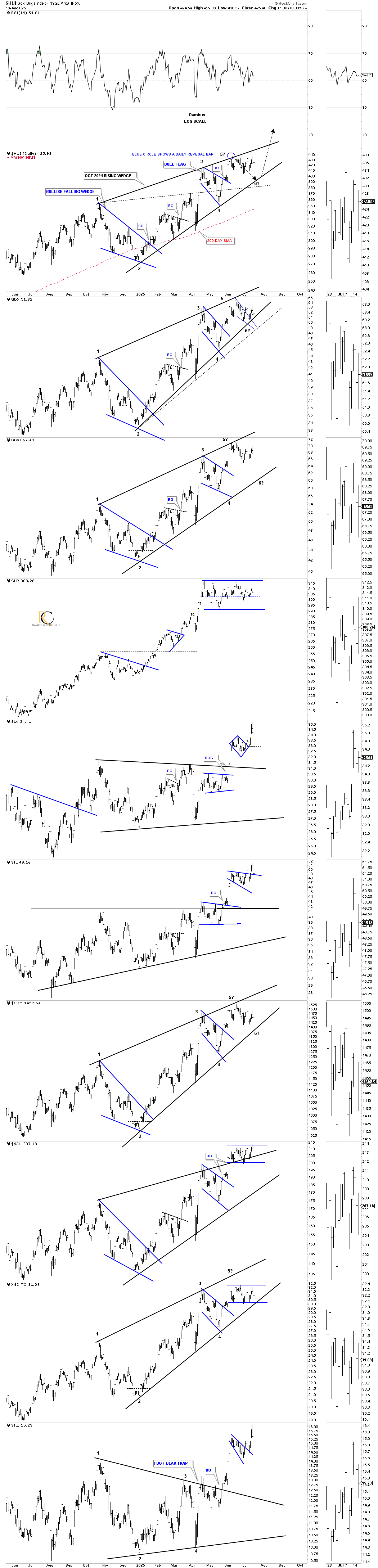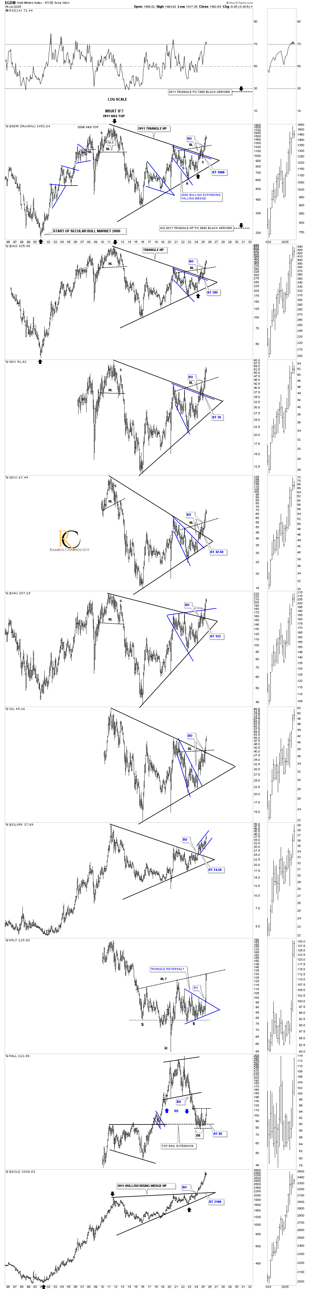 To understand the potential bullishness of this 2011 triangle, just look at the bottom of this combo chart where gold completed its 2011 bullish rising wedge and has been impulsing higher, leading the PM complex.
