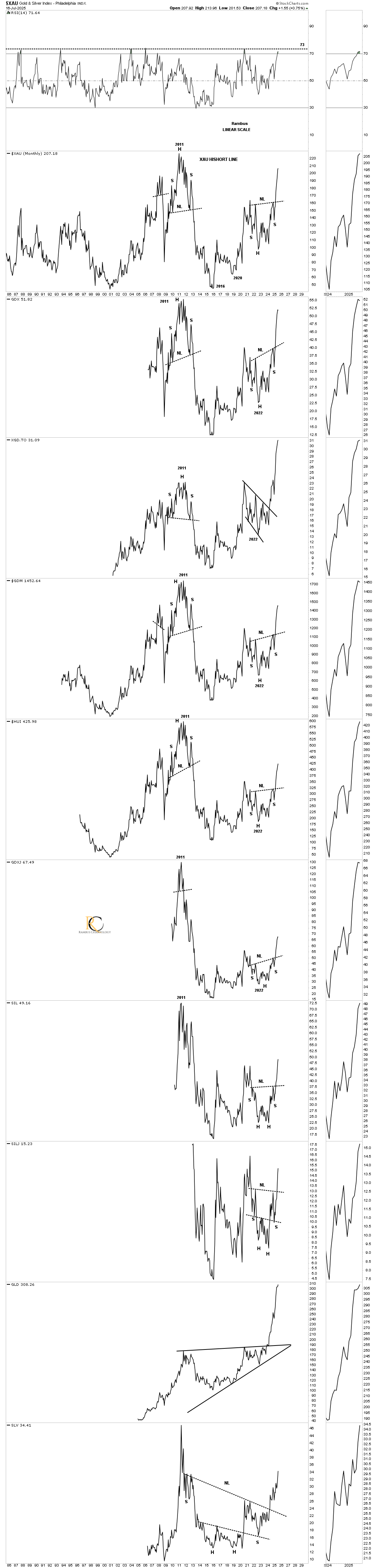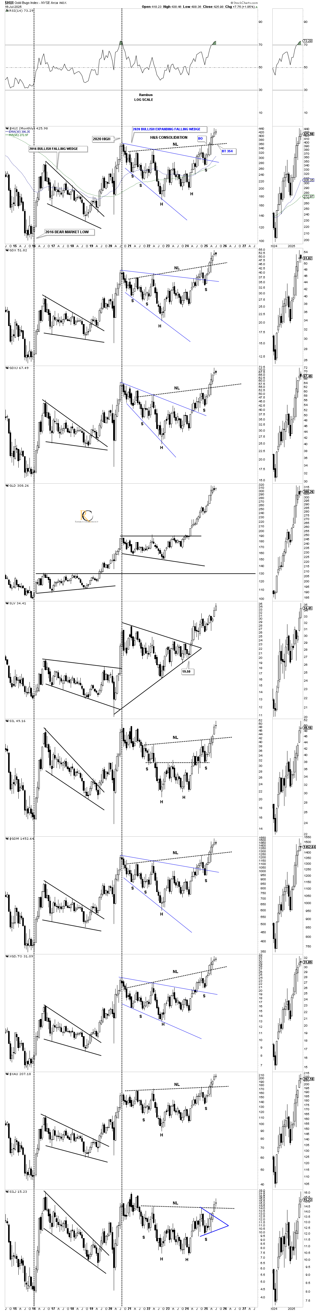 Tonight, I would like to paint the very big picture for the PM complex, so you can see how the Chartology has evolved to get us to this most bullish phase of the secular bull market. There is an old expression in Chartology that says, “BIG CHART PATTERNS LEAD TO BIG MOVES.” There is another expression that I came up with that says, “BIG CHART PATTERNS CAN LEAD TO EVEN BIGGER PATTERNS AND BIGGER MOVES,” which we will look at tonight for the PM complex.