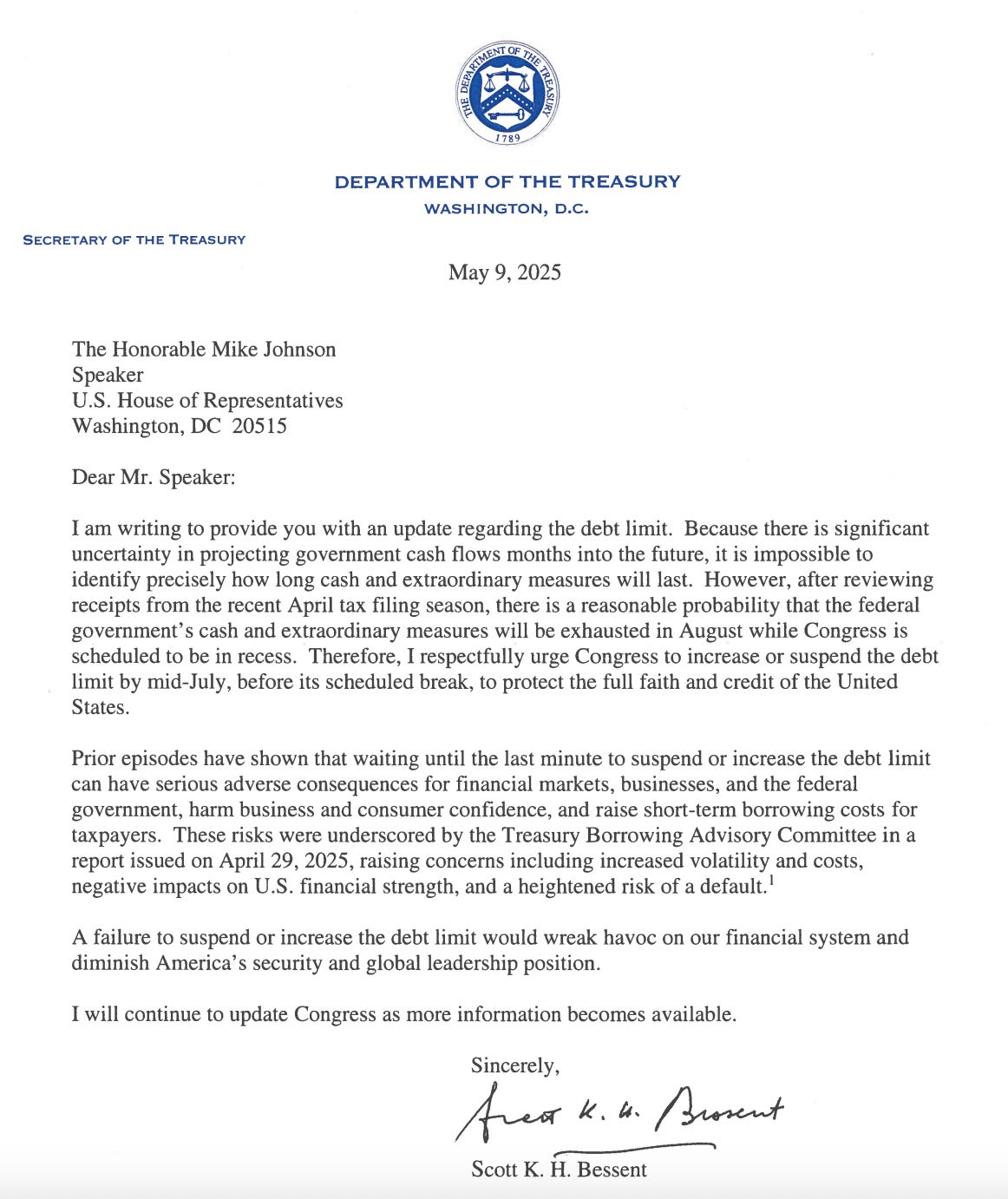 And just in case you were wondering, we are now starting to hear some activity about the upcoming debt ceiling limit, which has been suspended for the last year and a half.