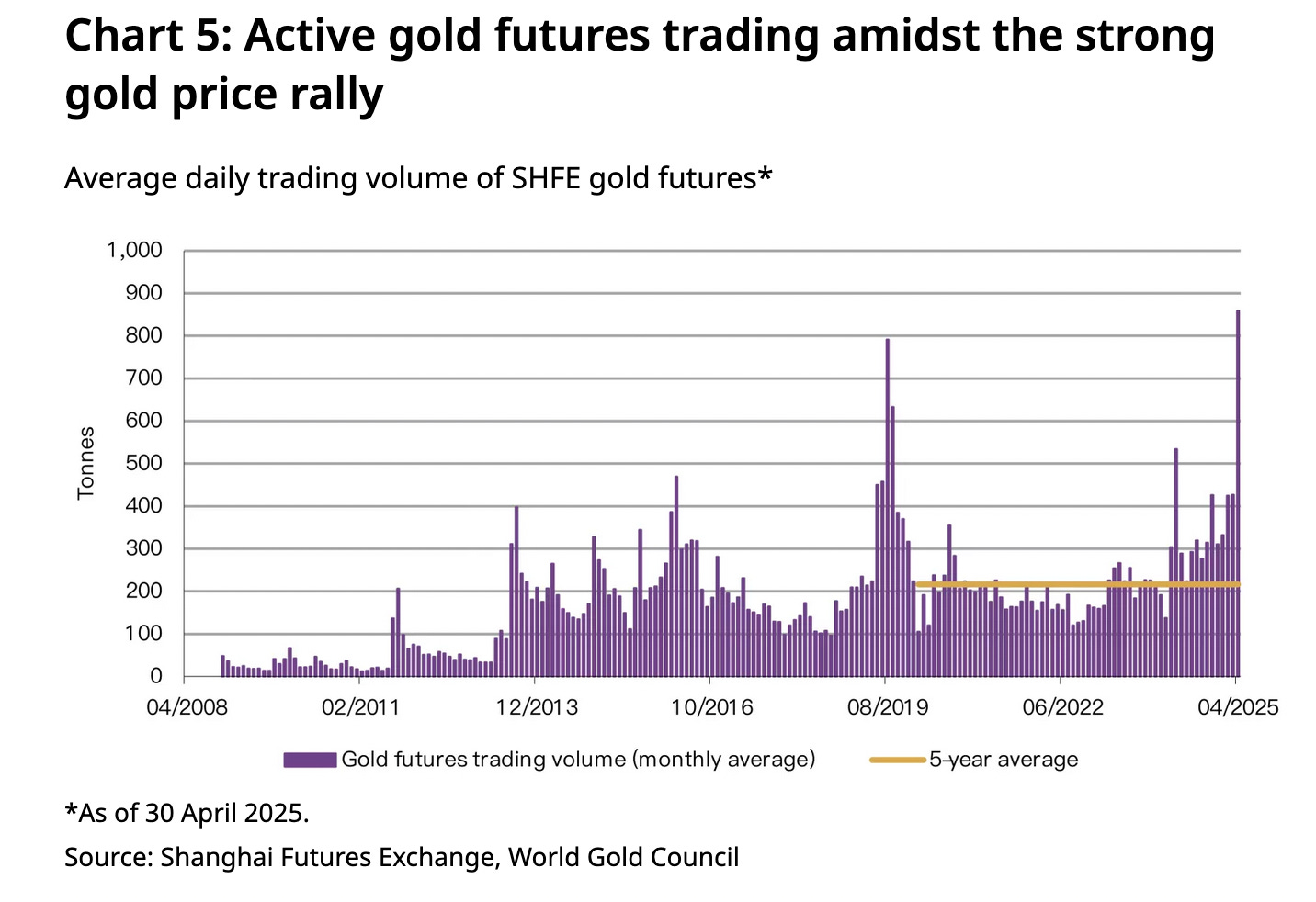 The WGC council also notes a surge in Chinese gold futures trading in April.