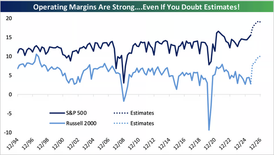 Where could that disappointment come from? My best guess is that it will be derived from earnings and profit margins. As shown, the expectations for 2026 are for a surge in profit margins and revenues, next year, which would have to be derived from the perfect economic outcome: growth with no inflation. That cocktail will be complicated to achieve, and while the Federal Reserve is cutting rates and providing liquidity, that does not resolve the crimp that is showing up in household budgets.