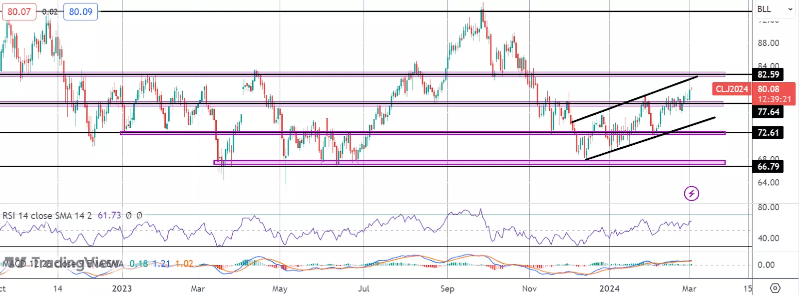 Alongside the production cuts oil prices are also trading higher on the back of fresh news linked to attacks in the Red Sea. A UK cargo ship was reported to have sunk in the Red Sea following a missile attack by Houthi rebels. With violence in the region ongoing, more ships are diverting, putting a risk premium on oil distribution which is also driving prices higher.