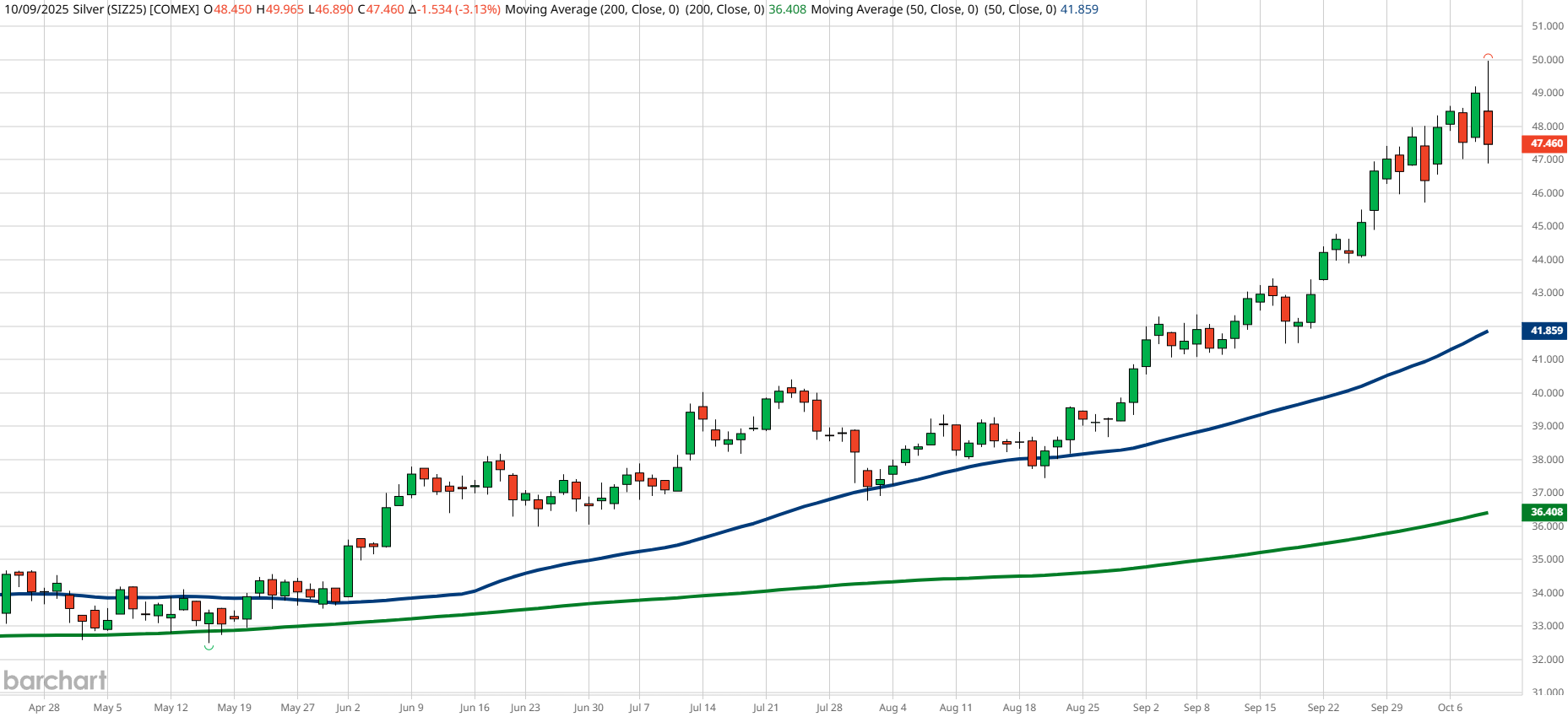 Also, no secret is that we were focused on silver even more than gold lately as we believed silver could go to $50 quickly. It did.