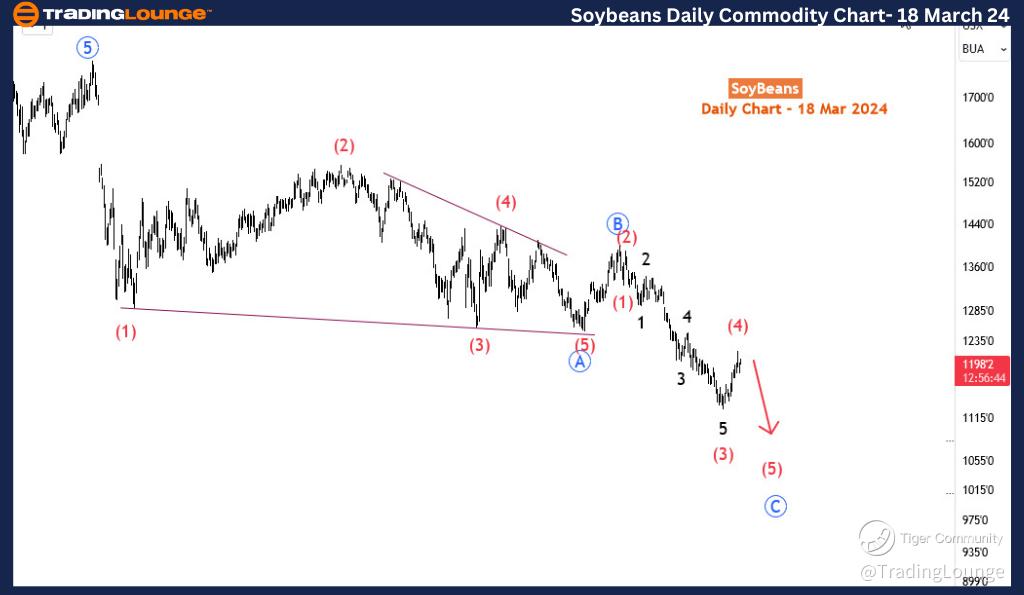 The resurgence of Soybean since 29th February 2024 is presenting a corrective structure within the broader context of a bearish trend prevailing since 15th November 2023. This corrective move suggests a potential retracement rather than a full-scale reversal of the preceding downtrend. Should this scenario materialize, it's plausible to anticipate a resurgence of selling pressure in the coming days or weeks, potentially leading to a breach of the most recent low and revisiting price levels not seen since October 2020. Employing the Elliott Wave Theory allows for a structural examination, offering insights that can aid in forecasting the future trajectory of this commodity with a heightened level of precision. Delving into the Elliott wave analysis of Soybean across both daily and H4 time frames provides a comprehensive understanding of its current dynamics.