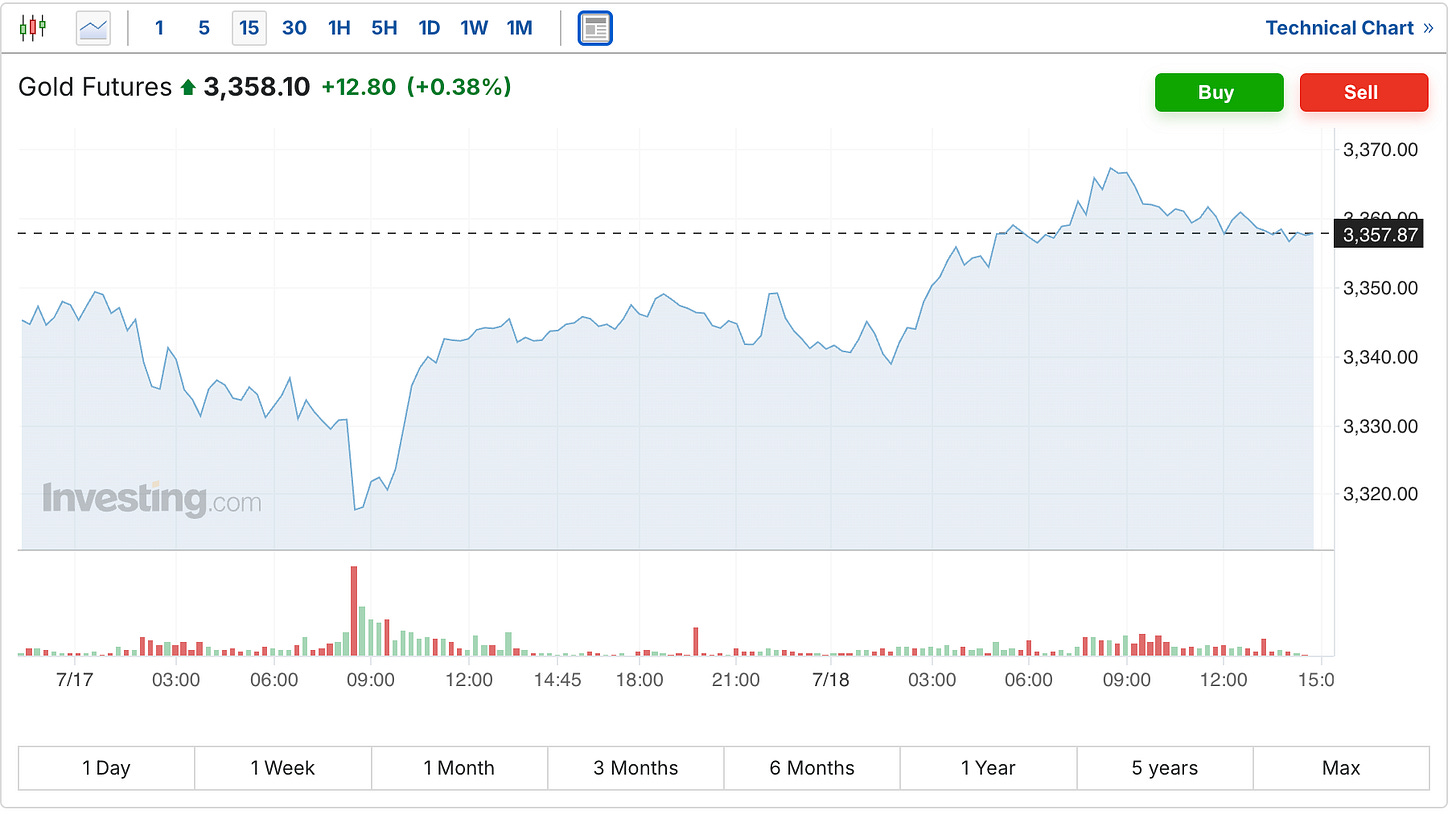 The gold futures were up another $13 to $3,358.