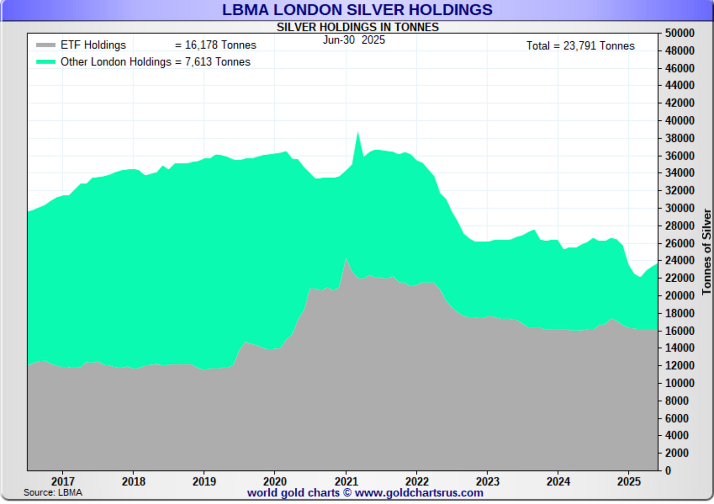 Looking at the LBMA vault holdings, the available free-float is down to 7,613 tonnes, which is 268.5 million ounces.
