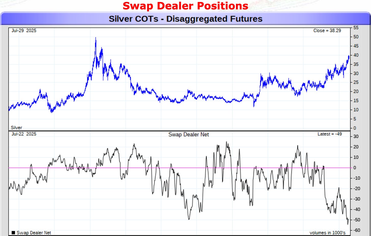 Additionally, had we seen a sell-off like this at a time when the bank short positions were on the lower side, that would be more alarming. But while I would not by any means suggest that silver is going to rebound and break $40 tomorrow or next week, it would also be premature to be worried that silver is now going to fall back to the low 30s just simply based off of the trading action of the past few days.