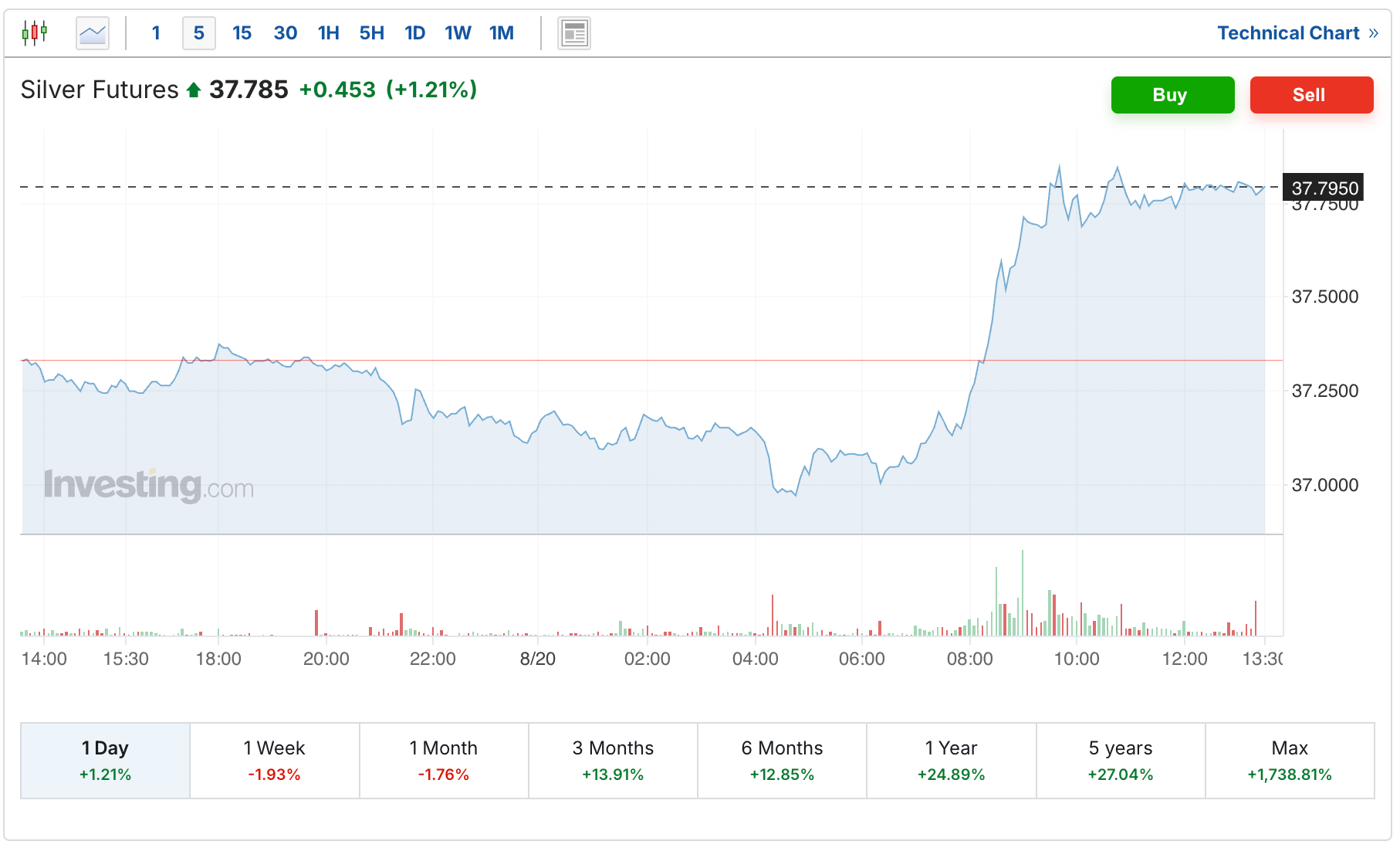 We finally saw the gold and silver pricing reverse course today. As after a multi-day sell-off, the prices rebounded higher, once again leaving gold near the $3,400 mark, and silver just under the $38 level.