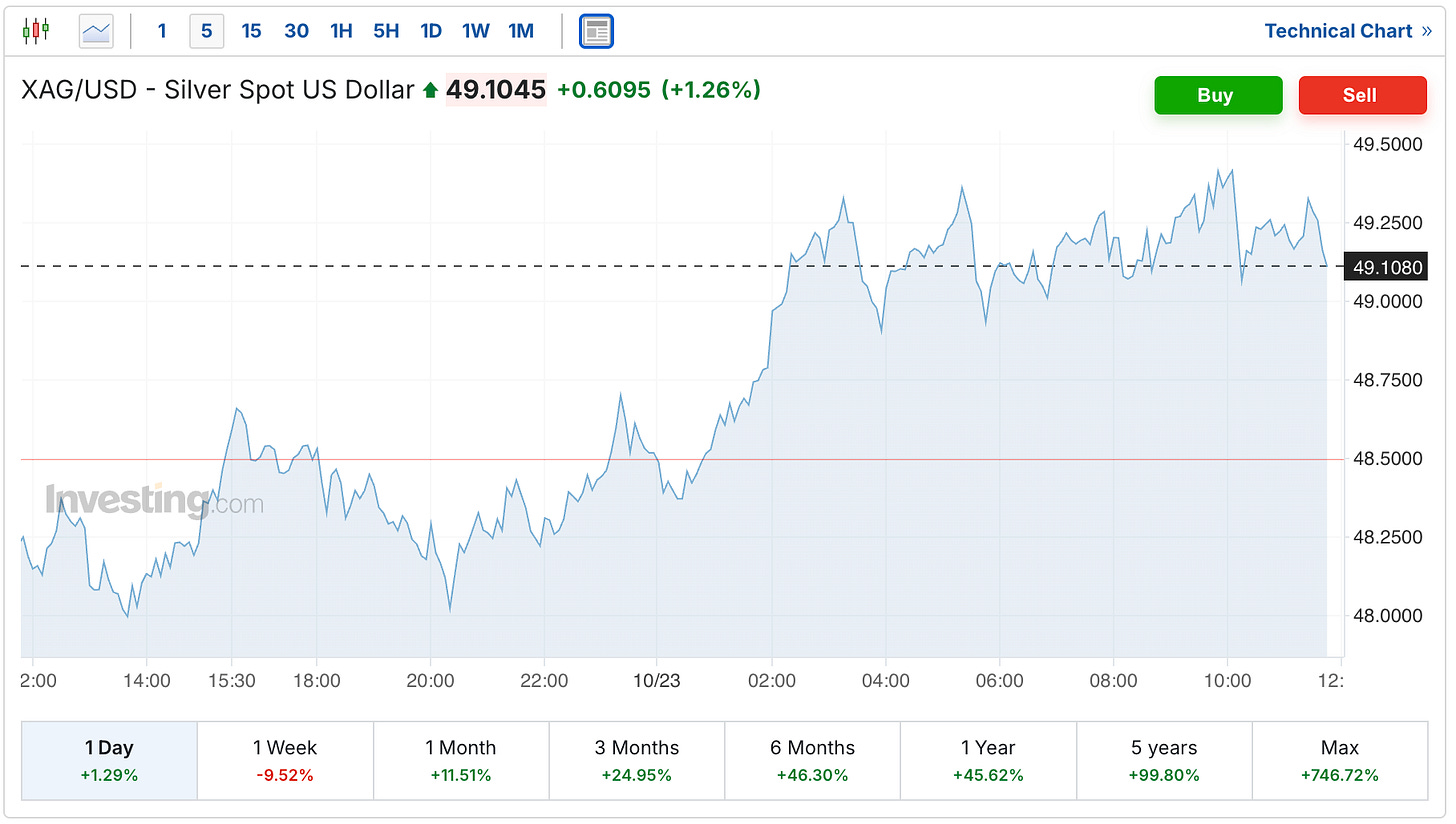 And the silver spot price is up 71 cents to $49.10.