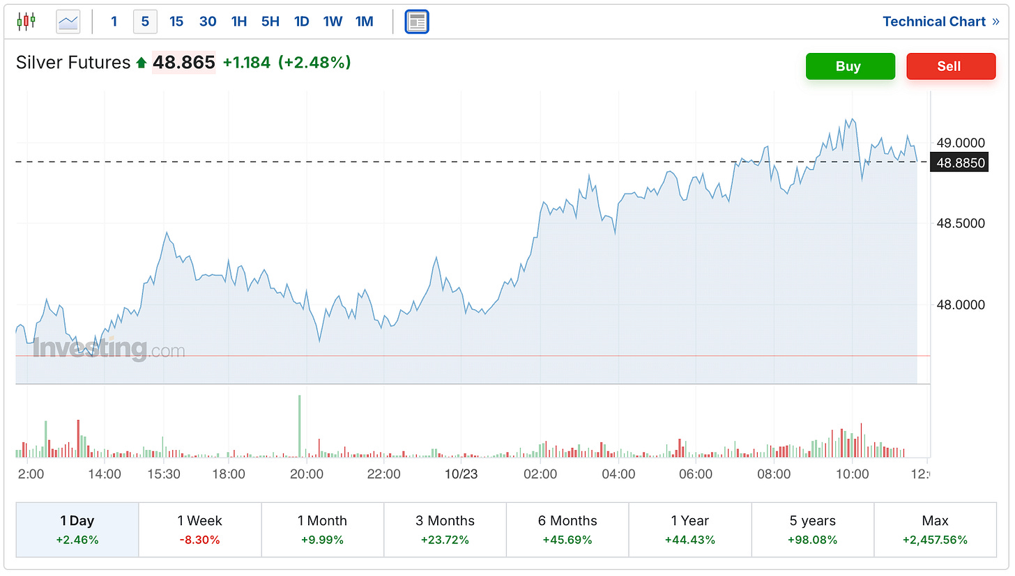 The silver futures are up $1.18 on the day to $48.87.