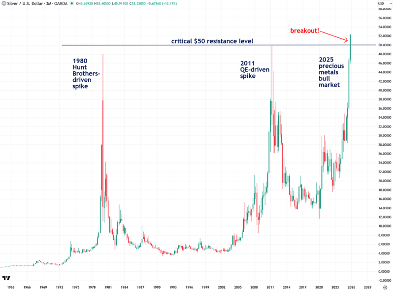 Yesterday was a very important day because both gold and silver have finally smashed through two critical levels, $4,000 and $50.