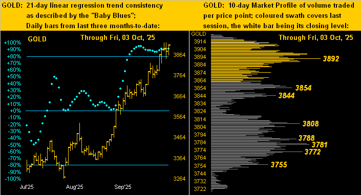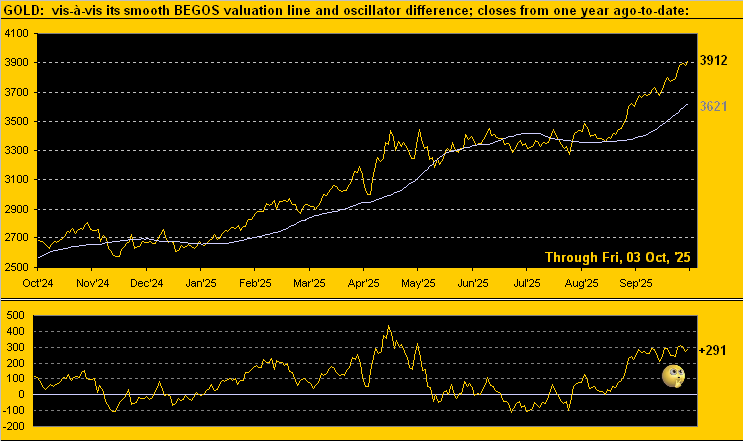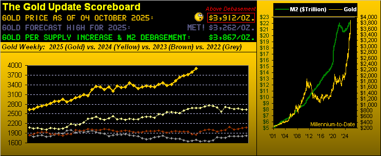 Indeed en route to settling out the week yesterday (Friday) at 3912, Gold traded to yet another All-Time High at 3923 on Thursday. As for Sweet Sister Silver, she traded up to her own 14-year high at 48.33 toward closing the week at 47.97, +63.8% net year-to-date and well-outpacing Gold’s nonetheless splendid net gain of +48.2% thus far in 2025.