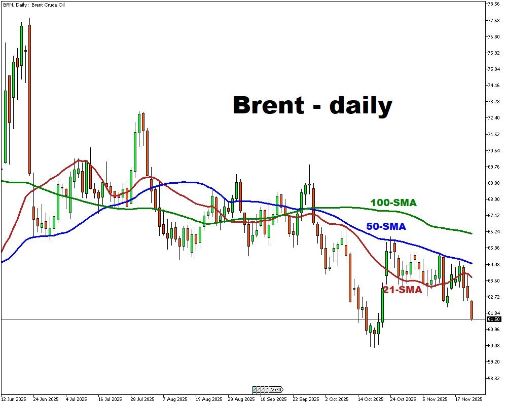 Brent crude has slipped below $62 per barrel, hitting a four-week low as traders react to indications that the Russia-Ukraine conflict may be moving toward a mediated peace framework.