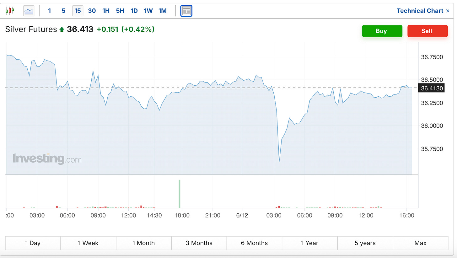 Silver on the other hand was quiet again today, and rose 15 cents to $36.41.