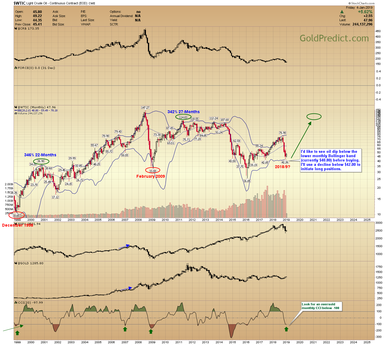 The CRB hit the target box, but it’s unclear if prices bottomed. We may see one more dip in early 2019 that undercuts the 2017 166.48 low.