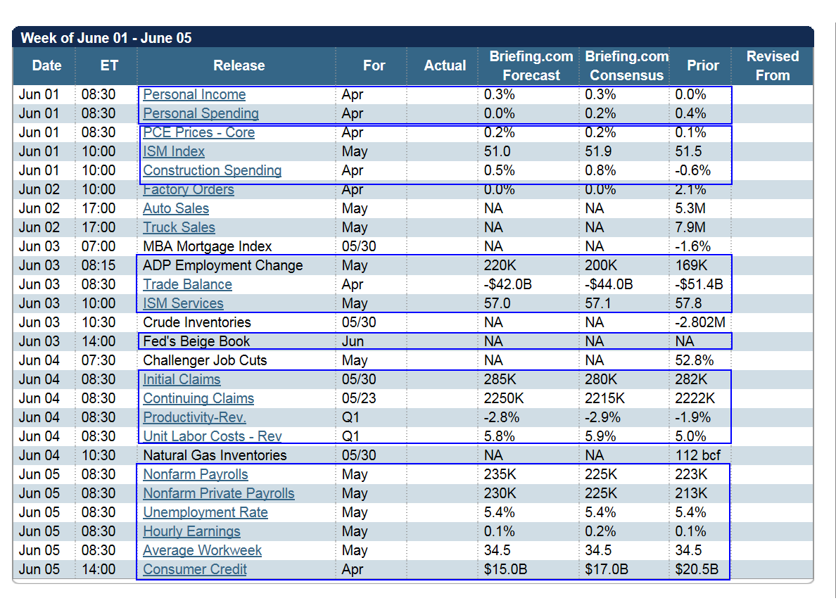 Among these will be the Non-Farm Payrolls number for May, which will be released on Friday.